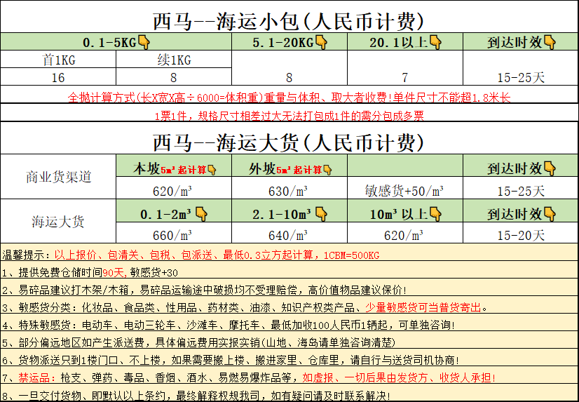西马-(空运/海运)-淘宝集运报价