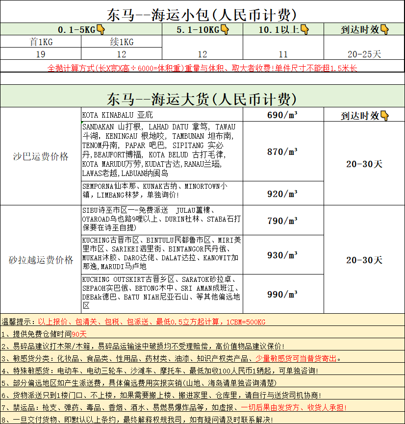 东马-(空运/海运)-淘宝集运报价